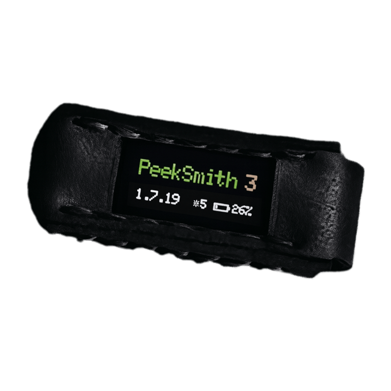 Made from high-quality leather and hand-stitched for durability, this case keeps your PeekSmith safe while maintaining a refined look. The slim, precise fit ensures the device is secure without adding bulk, while still giving you full access to the display, buttons, and charging port.