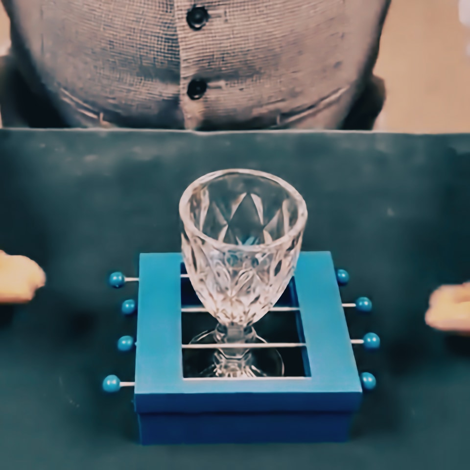 After proving the solid bars are securely in place, a borrowed card, or even a canned drink impossibly pass straight through the middle. Your audience is in awe.